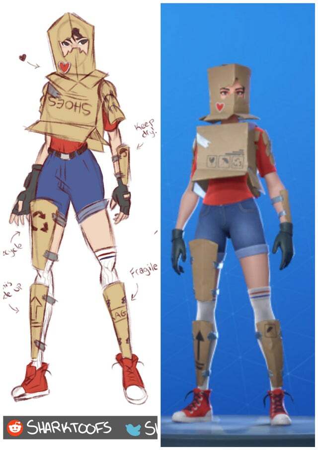 A kartondobozokat magukra szigetelőszalagozó karakterek igencsak ötletesek lettek, biztos vagyok benne, hogy sokan vásárolnak majd belőlük. Az Epic pedig az ötletet egy játékosnak köszönheti, hónapokkal ezelőtt ugyanis Redditen jelent meg egy rajongói rajz, amit egyébként szinte egy az egyben valósított meg a fejlesztőcsapat. A férfi modell már az Epic érdeme, ahogy a speciális Wrap és Pickaxe is.