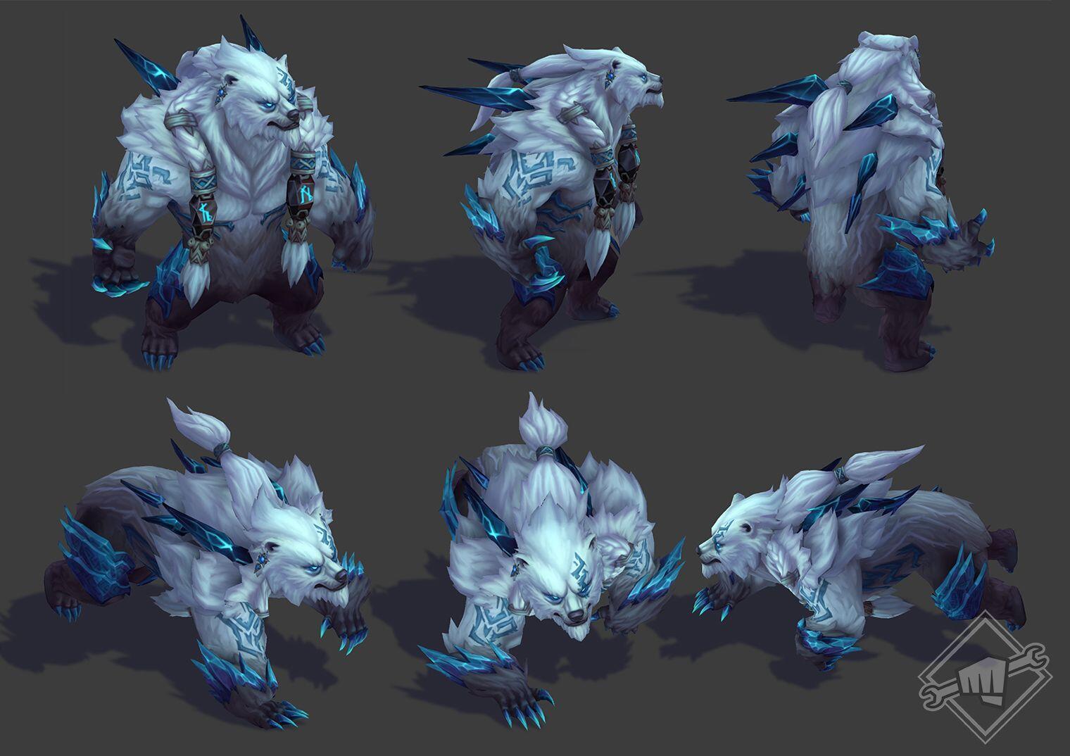 A kinézetét illetően viszont sokáig nagy volt a kérdőjel, az egyik iteráció szerint a megszokottnál horrorisztikusabb külsőt kapott volna, a másik megoldás pedig a tradíciót követve inkább egy freljordi istenre hajazott. Utóbbi győzött, ám olyan sokaknak tetszett a „lovecraftos” verzió is, hogy végül a Riot úgy döntött, skint csinálnak belőle. Ezt a skint pedig minden tulajdonos ingyen megkapja a VGU megjelenésekor.