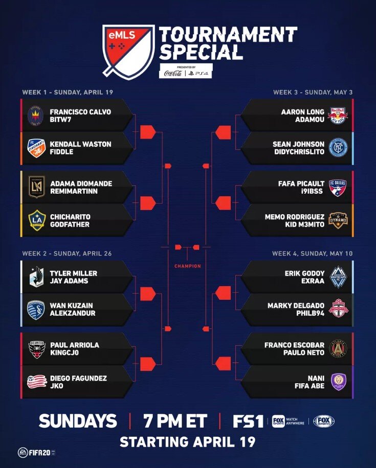Az eMLS Torunament Special a Fox Sports 1-en és a Fox Deportes csatornákon lesz követhető április 19-től. A liga nem kisebb szponzorokat tárazott be, mint a Coca Cola, vagy a PlayStation 4.
