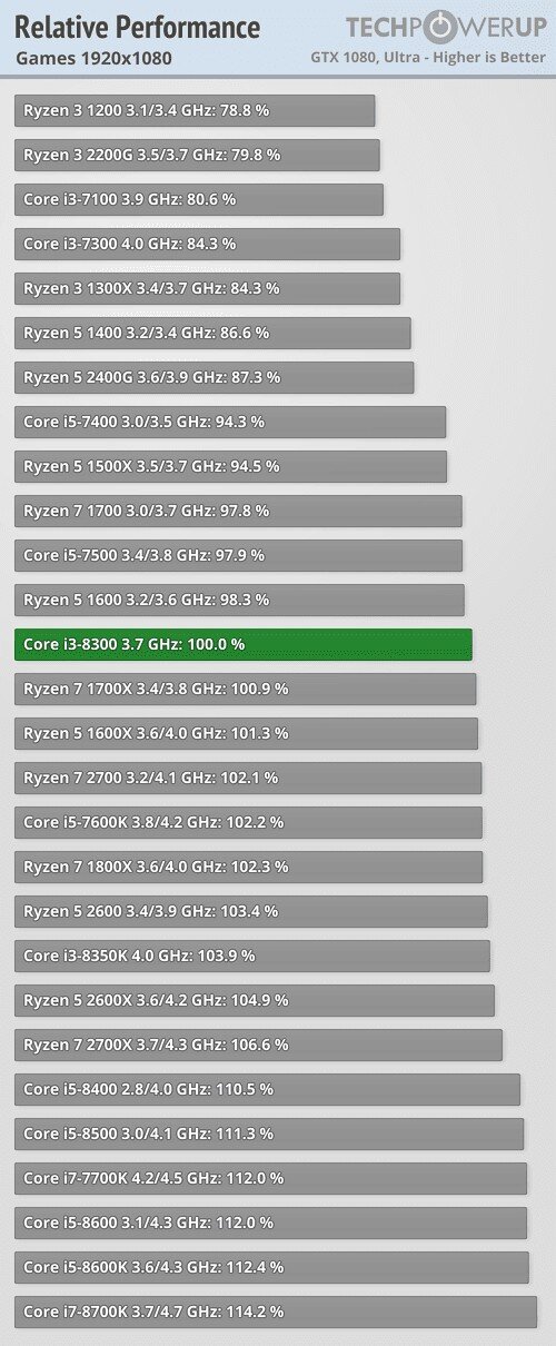 A Techpowerup tesztje egyértelműen bebizonyította, hogy az olcsóbb Ryzen 3-akat szépen maga mögé utasítja az olcsó i3. Ez pedig kizárólag az IPC-béli előnyből eredeztethető, ugyanis az AMD-nek csak a 3. generációs Ryzenekkel sikerült az Intel mellé érni IPC-ben, az első generációs Ryzen 3-ak így nem bizonyulnak a legjobb választásnak esetünkben.