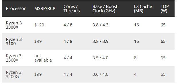 Egész pontosan a Ryzen 3 3100 és Ryzen 3 3300X érkezett meg. Bennük közös, hogy az AMD mindkettejüket 4 maggal és további 4 szállal szerelte. Közös továbbá az alapórajelük, ami 3,8 GHz, viszont a Boost órajelekben már különbözik a két processzor. Ugyanis míg az előbbi 3,9 GHz-ig boostol, addig a 3300X akár 4,1 GHz-ig is képes elmenni. Ezzel együtt az árcédulájuk is különböző, a Ryzen 3 3100 99 dollárba, a 3300X pedig 120 dollárba kerül. Sajnos a jelenlegi forintárfolyamon ez elég magasra rúg, egész pontosan 42 és 50 ezer forintos árakról beszélgetünk. Az inflációt jól mutatja egyébként, hogy a Ryzen 3 3100 a Ryzen 3 3200G árszintjére érkező termék. Ez utóbbi mégis 30 ezer forinttól érhető el a magyar boltokban.