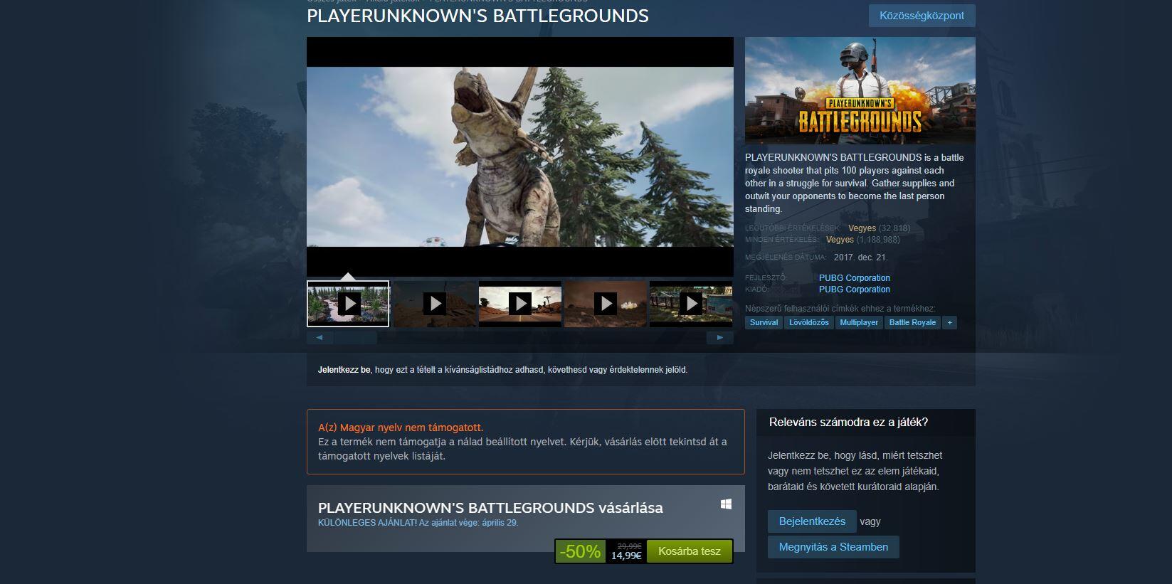 így most 30 euró helyett mindössze 15 euróért, azaz nagyjából 5 000 forintért húzhatjuk be a PUBG-t.
