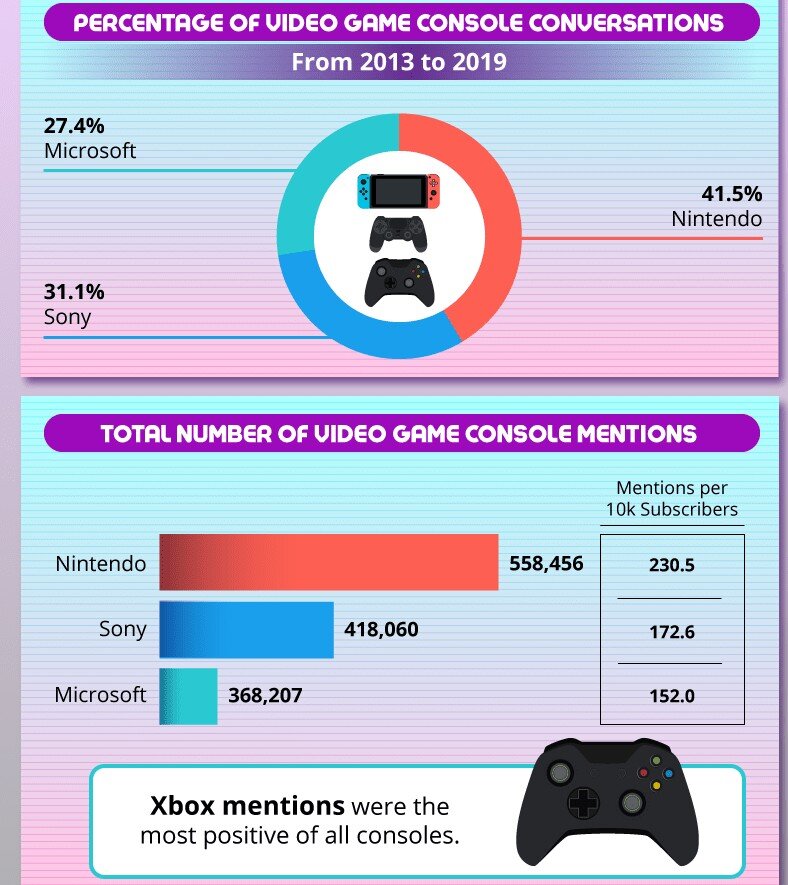 A konzolok közül a Nintendo volt a leginkább említett gyártó, a Xbox a lista alján szerepel.