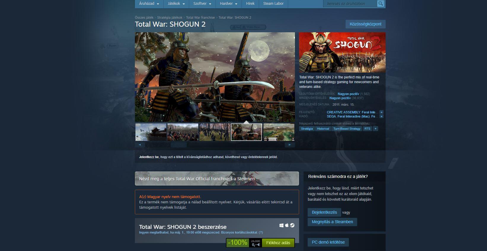 Ezúttal minden idők egyik legjobb stratégiai játékára csaphatunk le a Sega jóvoltából, akik úgy gondolták, hogy a koronavírus-járvány idején se unatkozzon senki. Ennek örömére a 30 eurós Total War: Shogun II-t ingyen bedobhatjuk a gyűjteményünk többi darabja közé.