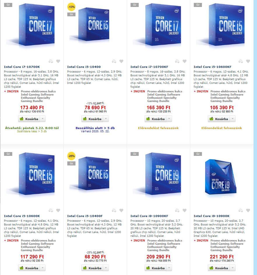 Ide is elérkeztünk. Május 20-át írunk, az Intel pedig idáig tartotta az embargót a 10. generációs Comet Lake processzorai esetén mind teszt, mind pedig értékesítés szempontjából. Ennek megfelelően az első magyar árakat már jobban szemügyre is vehetjük.