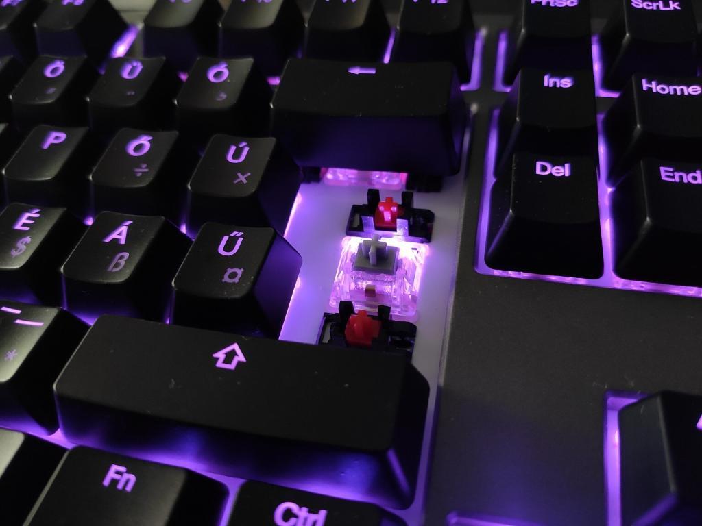 Őszintén szólva én a brown (barna) kapcsolók híve vagyok már egy jó ideje, mert az halk, remek vele a gépelés, ráadásul a játékokban is jól teljesít. Ez az MX SPEED Silver viszont kicsit megingatott. Most hirtelenjében nem is tudnék dönteni a két kapcsoló között, mert a Silver is halk, viszont kicsit más élmény vele a gépelés. Érezhetően gyorsabb, így aki szereti, ha a billentyű szinte azonnal érzékel, akkor az ne is gondolkozzon tovább. Viszont kellett egy kis idő, amíg megszoktam.