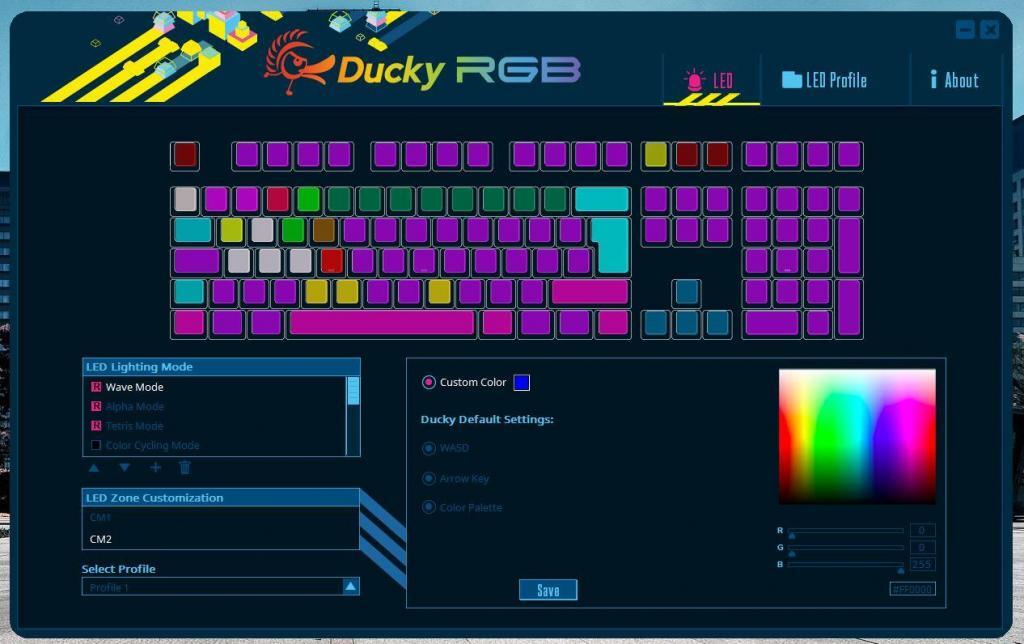 Az RGB-k teszik a dolgukat, talán egy kicsit bírhatnának nagyobb fényerővel, de ezen kívül gyakorlatilag úgy szabjuk testre a billentyűzetünket, ahogyan csak szeretnénk. A szoftver ebben maximálisan partner. A kezdeti szolid egyszínű kinézettől kezdve az RGB-s átmenetig minden effektet precízen tudunk állítani. Szerencsére teljesen egyedileg is beállíthatjuk a világításunkat, én is ennél a verziónál maradtam. Itt megjegyezném, hogy a programot mindenképp adminisztrátorként futtassátok, különben szimplán nem érzékeli a billentyűzetet a szoftver.