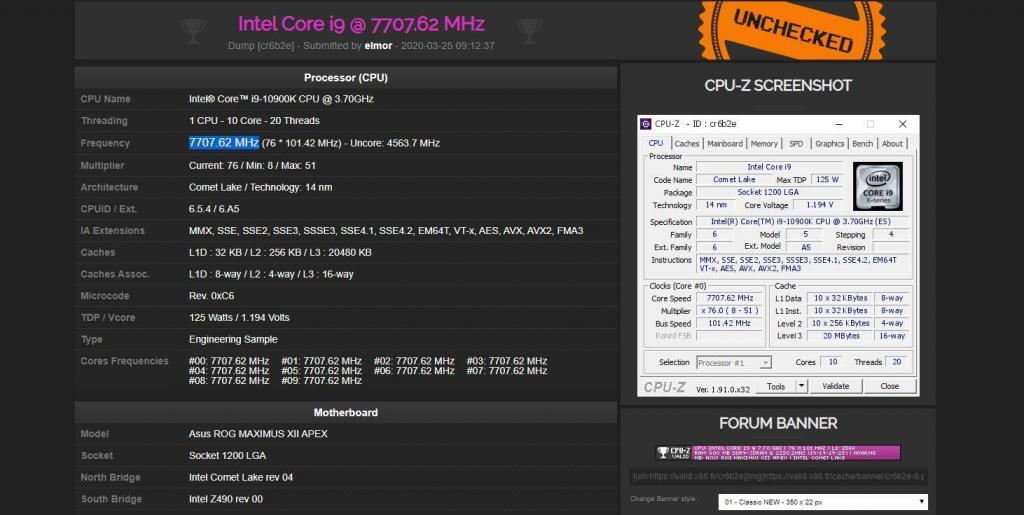 Tegnap hivatalosan is megjelent a boltok polcain az új Comet Lake széria, ami a hazai forintárfolyamnak köszönhetően nem túl baráti árcédulákat eredményezett. Az ElmorLabs lelkes tuning mestereit viszont ez egy cseppet sem izgatta, ugyanis egy céljuk volt: felállítani az első rekordot a 10. széria legerősebb darabjával, a Core i9-10900K-val.