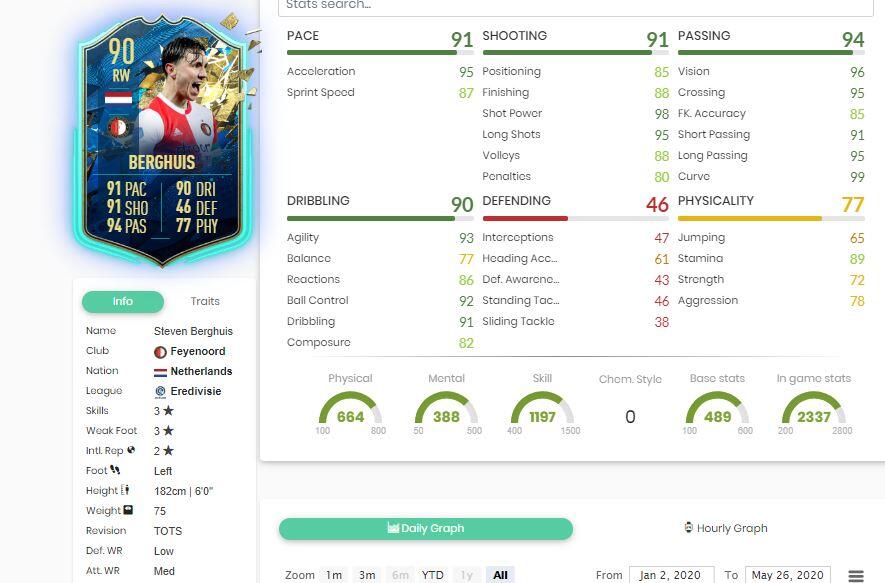 Berghuis esetében nekem aggályaim vannak. A szokásos dupla 3 csillag itt is jelen van, viszont az a Workrate nekem nagyon gyenge. Oké a támadó statjai nem rosszak, és valószínűleg ha az lenne a meta, hogy fuss el a szélen és add be arra nagyon jó, de na. Most az nem a legjobb megoldás.