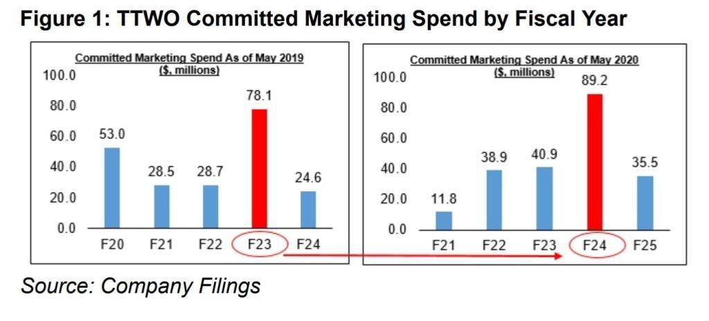 Az alább látható kiszivárgott dokumentum tehát azt mutatja, hogy a Rockstar mekkora összeget szán marketingre a következő években. Míg tavaly arról volt szó, hogy a marketingköltség jelentősen magas lesz 2023-ban, idén már 2024-et említik. Nyilvánvaló, hogy a GTA 6 megjelenése eléggé indokolttá tenné a marketingköltség növekedését az adott évben.