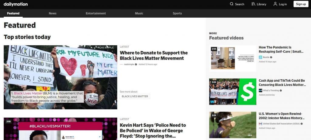 A Dailymotion aktuális főoldala