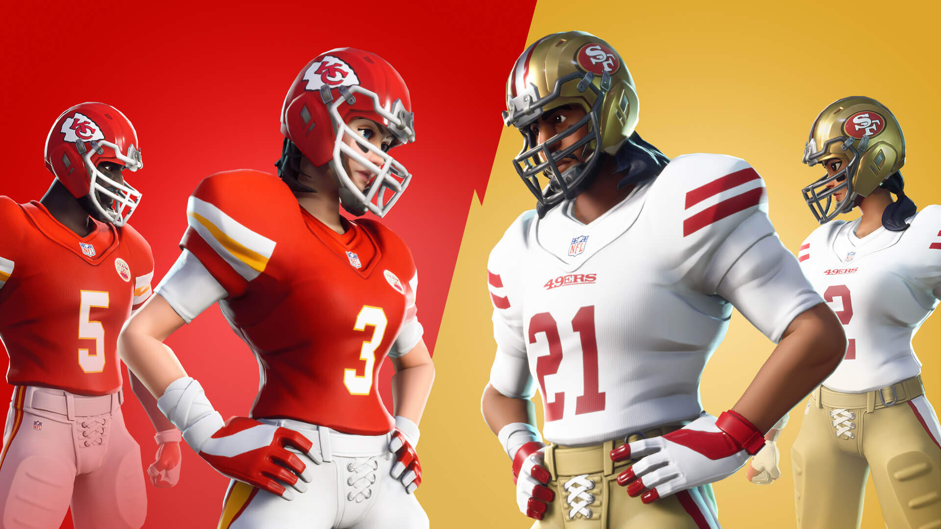 A játékban többféle sport tematikájú Outfit is található. Viszont egyedül az amerikai focista skinek kaptak hivatalos licencelt mezeket. A Fortnite x NFL együttműködés keretein belül a játékosoknak lehetőségük nyílt arra, hogy kedvenc klubjuk mezében pózoljanak.