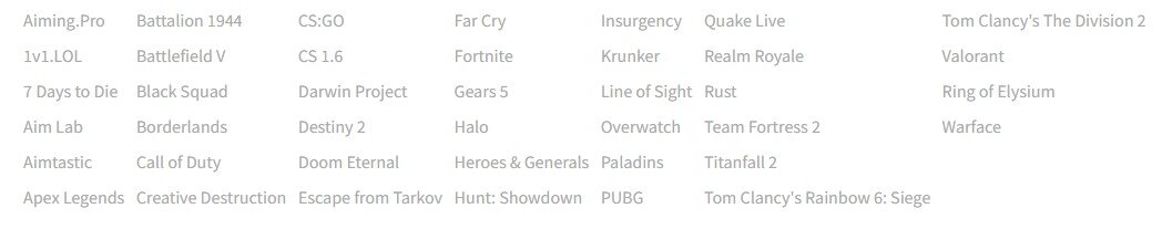Az oldal olyan sokak által kedvelt játékot kezel, mint a CS:GO, Fortnite, Apex Legends, Call of Duty, Rainbow Six, vagy éppen az Overwatch.