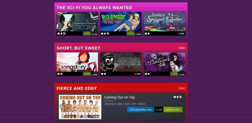 Meleg témájú játékok kaptak nagyobb akciót a Steam áruházában.