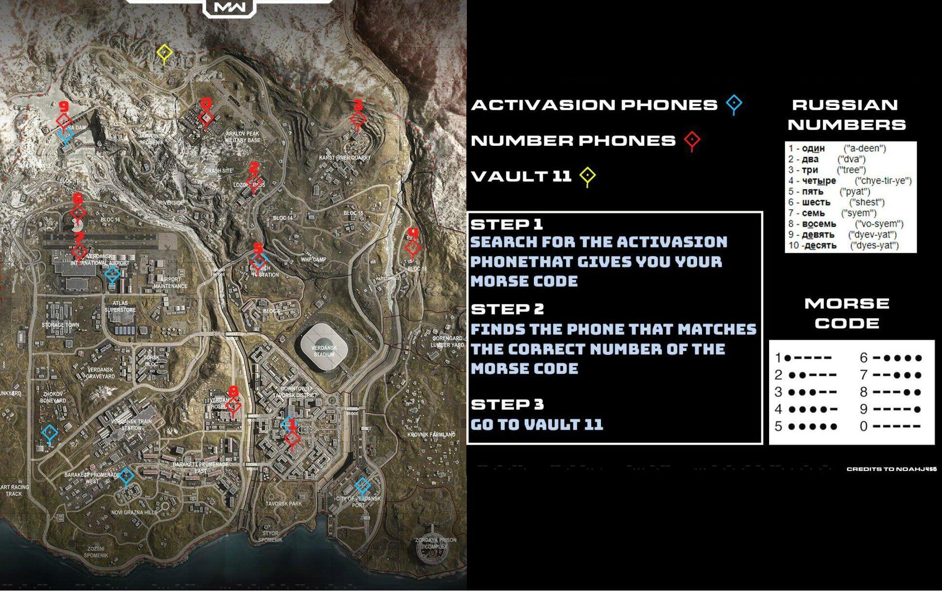 Ha megtaláltad a megfelelő telefont, egy orosz hangot hallasz, ami megad egy háromjegyű kódot. Szerencsére az oroszul nem beszélők számára StrangerRobijin lefordította a számokat. A kapott három számjegyű kód adja a telefonok sorrendjét. Például, ha 012-es kódot kapsz, akkor először a nullás, majd az egyes, majd a kettes telefont kell megkeresni. A folyamat jelentősen felgyorsítható egy jó csapattal.