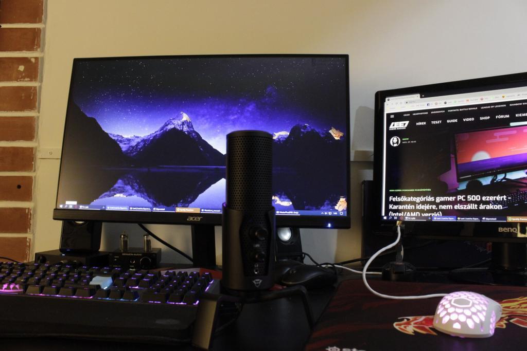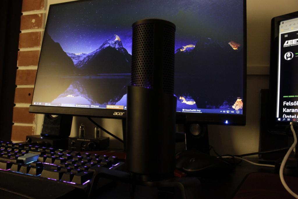 Mivel ajándékba kaptunk egy mutatós (+állítható) fém talpat, így kíváncsiságból megnéztem, hogy milyen minőséget produkál fél méterről a mikrofon. Egy magasabb belmagasságú szobában készült a teszt, aminek köszönhetően bizony hallható, hogy a hangszigetelés nem a legjobb és akkor még finoman fogalmaztam. Ennek köszönhetően kicsit dobozhangot kapunk, ami bár jóval dinamikusabb, mint az előbb hallott Cloud mikrofonjáé. Játék közben kevésbé érthető. Röviden ez így nem az igazi.