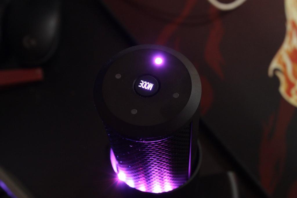 Mivel gamer mikrofonról beszélünk, így természetesen a ledek sem maradtak ki a GXT 258 Fyru esetében. A váz aljában 5 led világítást helyeztek el, amit ráadásul kedvünk szerint változtathatunk. Öt különféle színben pompázhat a Fyru, a háttérvilágítás ráadásul ki is kapcsolható, ha esetleg valakit zavarna este.