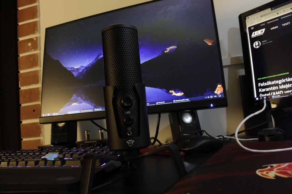 A GXT 258 Fyru a kondenzátoros mikrofonok családjába tartozik, viszont nem kell semmiféle fantomtápot mellé tennünk, ugyanis az USB porton keresztül kommunikál a gépünkkel. Plusz pont a lecsatolható USB-c kábelért, aminek köszönhetően az sem gond, ha esetleg a kábelt véletlenül otthon hagyjuk költöztetéskor. Egyébként a kábel minőségén sem spóroltak, ugyanis egy közepesen merev, jó minőségű szövetkábelt kaptunk, ami nem fog egykönnyen megtörni.
