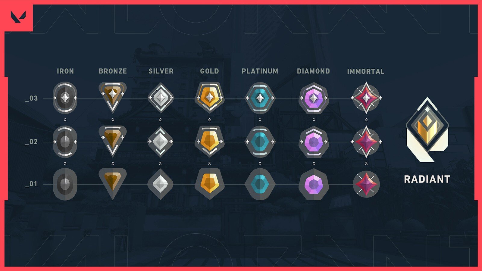 A bétában résztvevőknek lehetőségük volt megmérettetni magukat Ranked meccseken is. Az érdeklődőket divíziókba sorolta a játék, Irontól egészen Valorant rangig. Értelemszerűen az Iron volt a legalja a létrának, míg a Valorant rangú játékosok a legtehetségesebbek voltak a közösségben.
