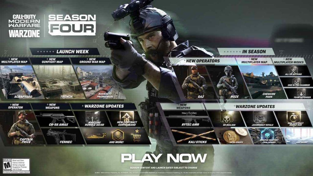 Mint azt gondolom mindenki tudja, a Call of Duty: Modern Warfare és Warzone negyedik évadának frissítései szép lassan követik egymást. Erről korábban a fejlesztők egy szép ütemtervet is megosztottak, melyből kiderül, hogy új operátor, új fegyver és játékmód is várható.