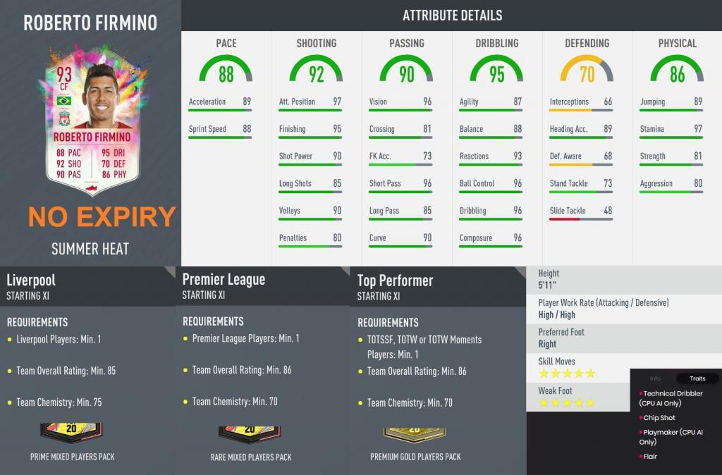 Sajnos Firmino lapja minden szempontból csak egy átlagos kártya, egyedül az 5 csillagos gyengébbik láb, ami említésre méltó. Ennek ellenére sajnos 3 csapatot is be kell hozzá áldoznunk, mely egy igazi lopássá teszi az új objective-et.
