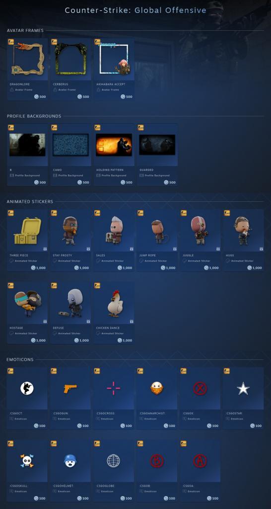 A fentebbi képen látható minden játékon kívüli cucc, mellyel jobban kimutathatjuk, hogy mennyire is szeretjük a CS-t. Az új holmikkal egészen őrületes dolgokat csinálhatunk, érdemes vetni például egy pillantást erre a profilra, sosem lehetett még Steam oldal ennyire látványos.