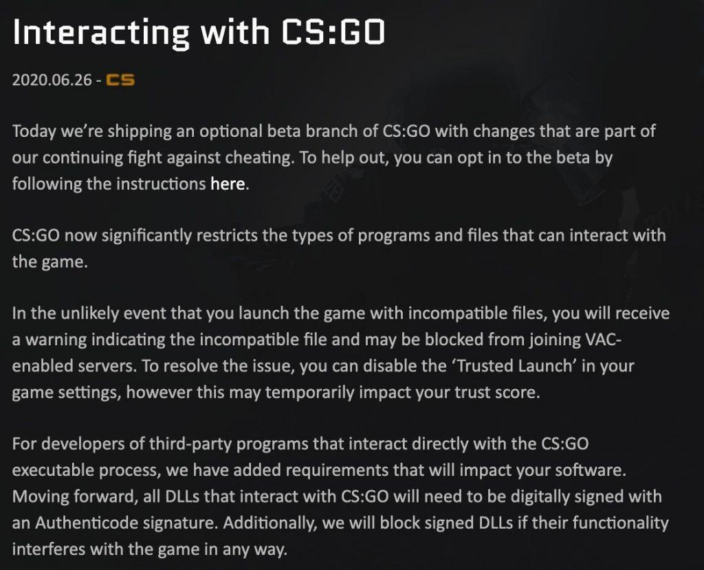 A CS:GO anti-cheat programja mostantól a VALORANT védelméhez hasonlóan fog működni. A fejlettebb program sokkal alaposabban és széleskörűbben vizsgálja játék közben futó programokat. Természetesen ha bármi olyat talál, mely kapcsolatba kerül a játék fájljaival és az nem hitelesített, azonnal értesítést küld a játékosnak.