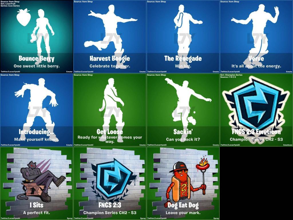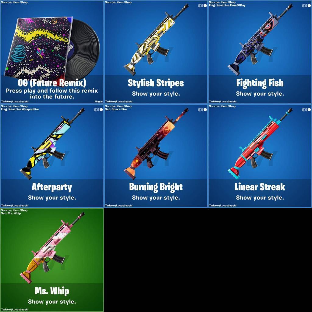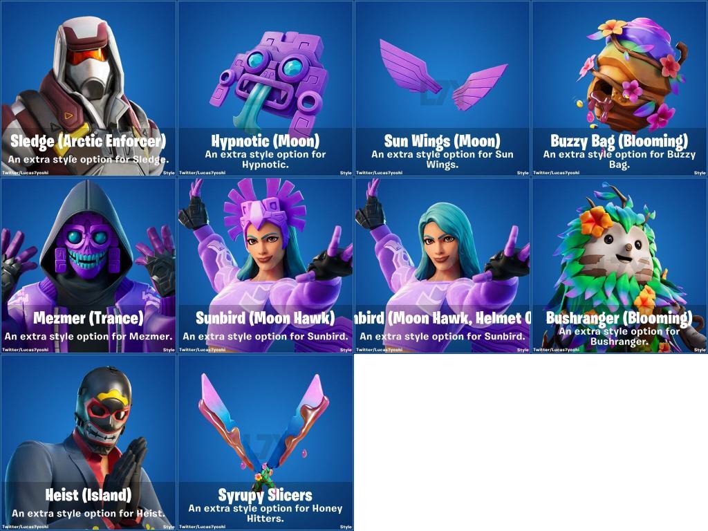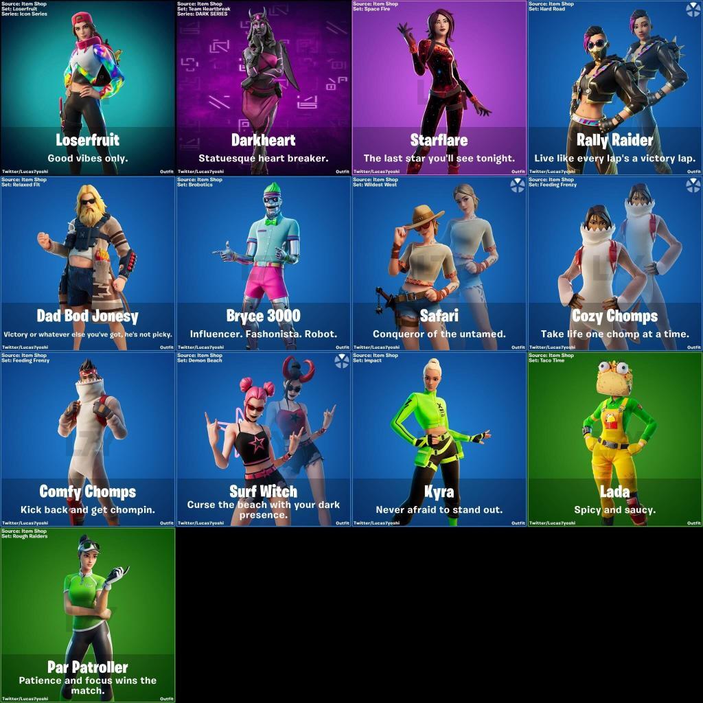 A fent látható gyűjteményt Lucas7yoshinak köszönhetjük, aki ismét gyorsan összeválogatta nekünk a legfontosabb újdonságokat. Ugyan Loserfruit Outfitje már megvásárolható volt, az összes többi leakelt Outfit és kiegészítő újnak számít. Pár régebbi skin új stílust is kapott, így ezt a mozgalmat sem hanyagolta el a kiadó.