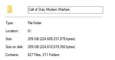 Nem sokkal a frissítés megjelenése után a Redditen vanillaricethrowaway tett közzé képet arról, hogy a számítógépén a Modern Warfare mérete 209 GB. Ez persze változó, egyes felhasználók esetében elérheti a 235 gigát is.