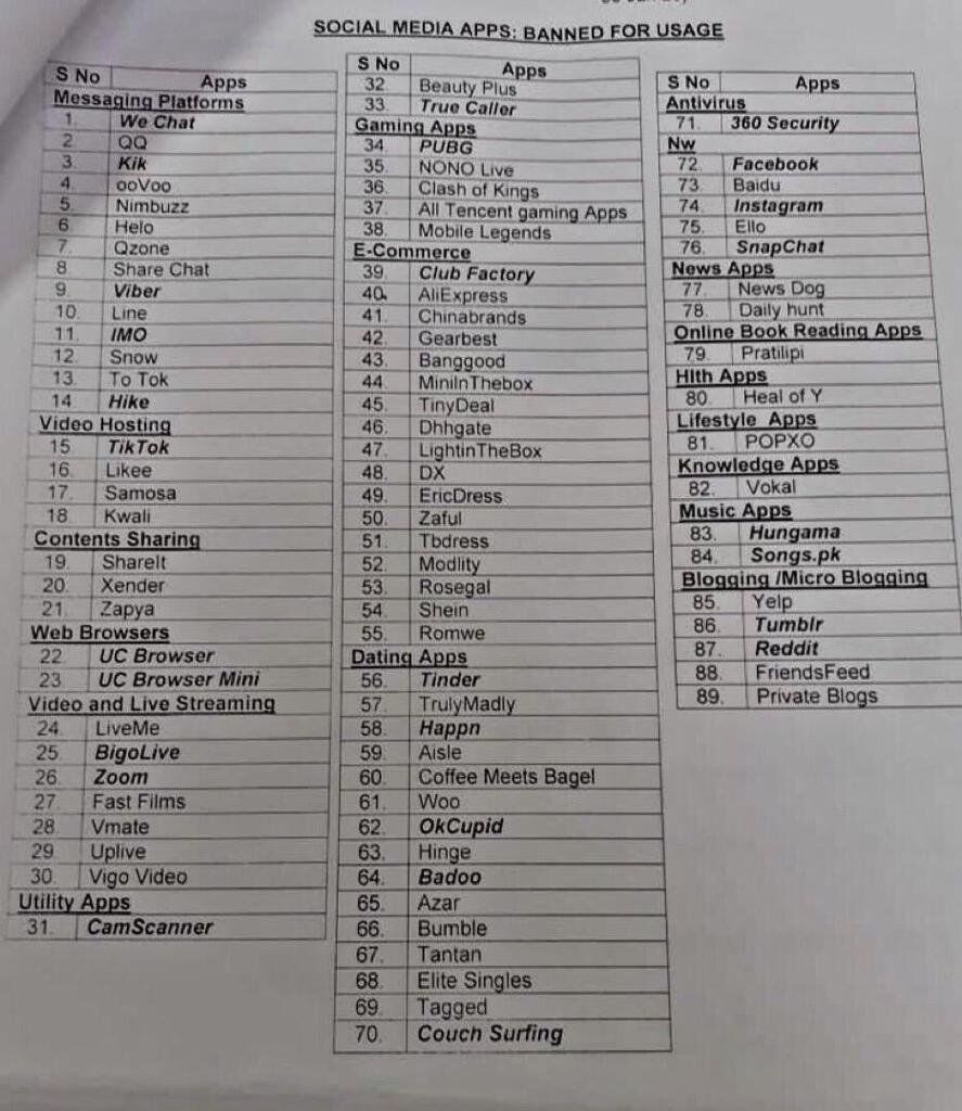 A teljesség igénye nélkül olyan appok kerültek letiltásra, mint a Facebook, Reddit, Instagram, Snapchat, Tinder, Badoo, TikTok, Viber vagy épp a PUBG és ezzel együtt minden Tencenthez köthető alkalmazás.