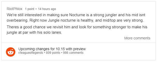 „Még mindig szeretnénk Nocturne-ből erős jungler karaktert csinálni. Bőven van arra esély, hogy nekiállunk a munkálatoknak.”