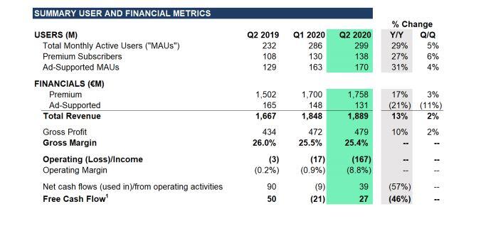 A svéd streming platform 2020-ban 29%-kal növelte az aktív havi felhasználói számát az előző évhez képest. Ez azt jelenti, hogy immáron 299 millióan használják a Spotify-t. Az előző negyedévhez képest 5 százalékkal nőtt a felhasználók tábora. Ezzel együtt a prémium felhasználók száma is nőtt, különösen Amerikában.