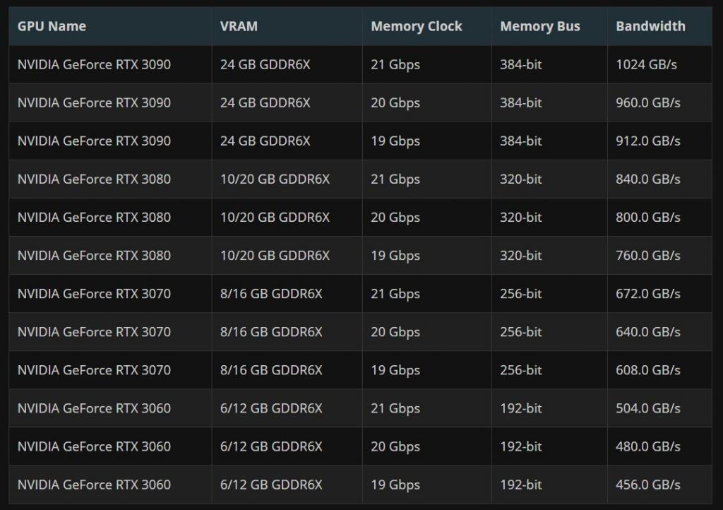 Amint az a képen látható, a jelenleg tervezett legkisebb modell, az RTX 3060 is 6, vagy akár 12GB rammal is érkezhet, mely szintén választható lesz 21 Gbps sebességű memóriával. A Micron, aki ezeket a modulokat gyártja, idén kő keményen odatette, hogy az Nvidia Ampere kártyák tényleg méltóak legyenek az első Nvidia GPU-hoz.