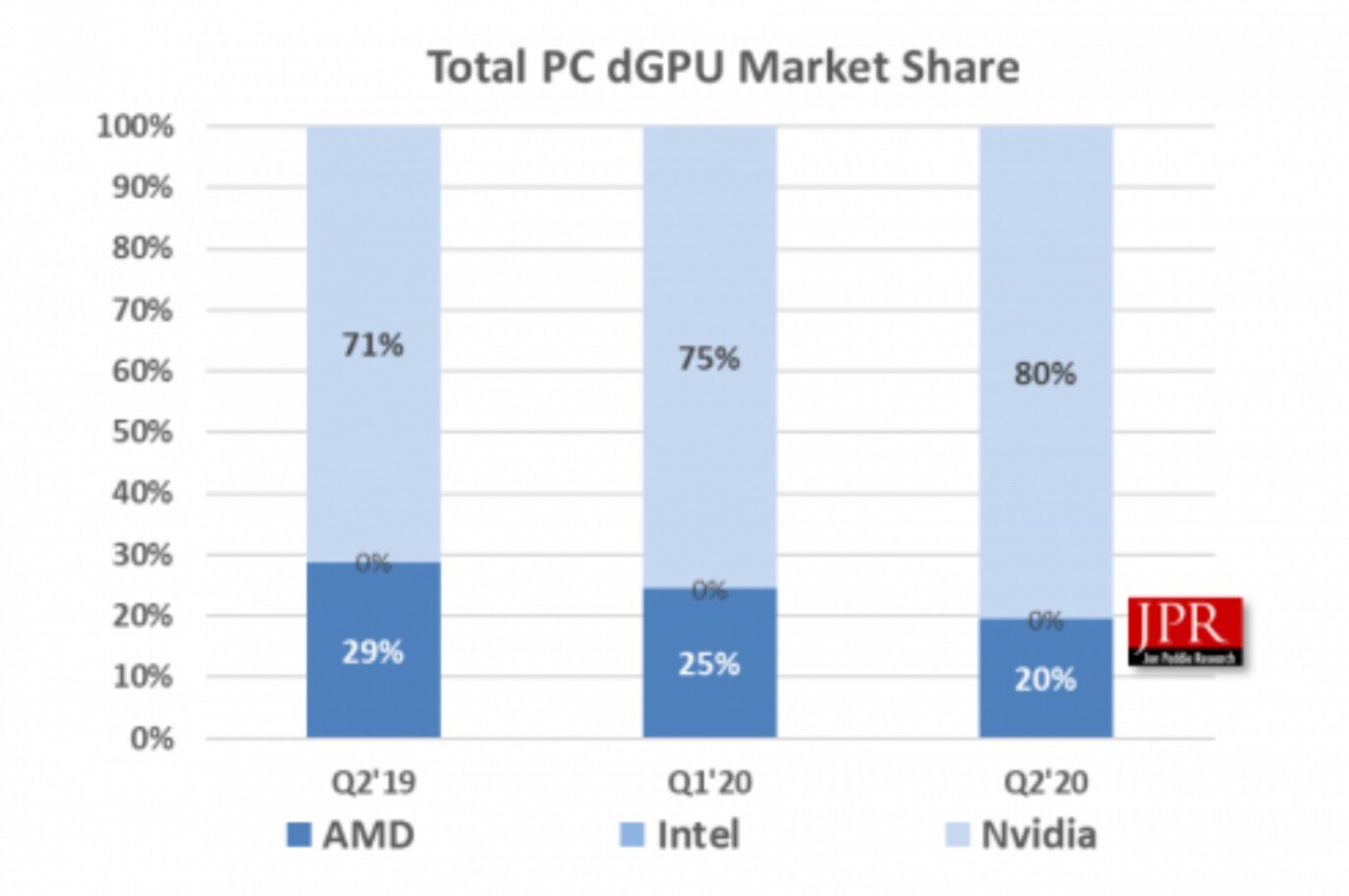Kigurult a szokásos negyedéves jelentés a JPR műhelyéből, melyben a GPU háború résztvevőinek piacrészre vonatkozó adatait összesítették. A számok alapján az NVIDIA egyetlen negyedév alatt nagyobb fejlődést vert az AMD-re, mint az előző kilenc hónapban összesen.