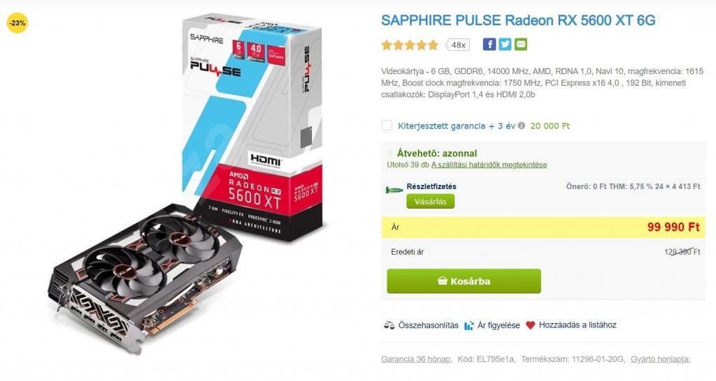 Ezúttal egy remek árú RX 5600 XT-t hoztunk el az akciófigyelő rovatunk keretei között. Ezt az AMD az RX 5700 alá pozicionálta, viszont annyira jól sikerült, hogy mindössze 5-6%-nyi teljesítménybeli különbség van a két kártya között. Akinek így sem mond semmit, az az RTX 2060-nal állíthatja szembe, ám az AMD némileg jobban teljesít összességében, a rossz hír, hogy itt viszont a Ray Tracingről le kell mondanunk.