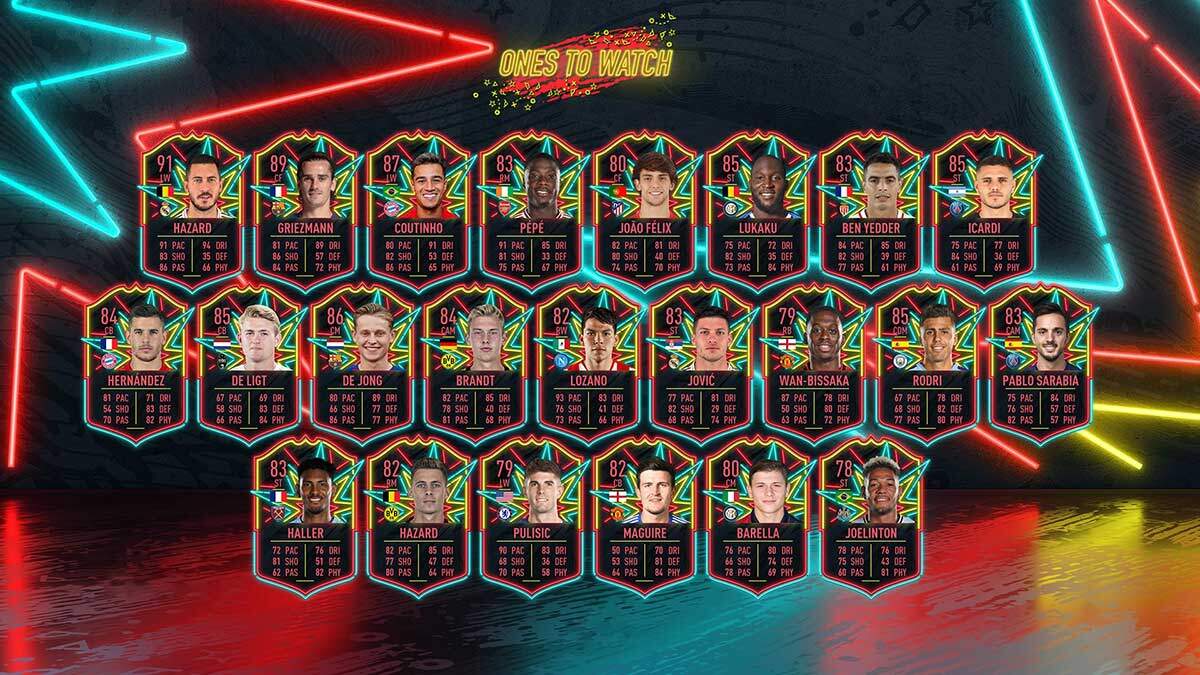 Az első komolyabb Coin-süllyesztő a Ones to Watch időszak, ami minden FIFA verzió első pár hetében kerül megrendezésre. Ilyenkor olyan kártyák eshetnek a csomagokból, amik egész évben fejlődnek, ha a lap alanya bekerül az egyik Team of the Week keretbe. Ezt azok a játékosok kapják, akik klubot váltottak a nyáron, vagyis egy új fejezetet kezdtek karrierjükben. Rájuk mindig az átlagnál jobban figyel az EA Sports, a kiemelkedő teljesítményt pedig természetesen díjazzák. Vannak itt ilyenkor kisebb reménységek is, de például a FIFA 20 elején Eden Hazard is OTW lappal gazdagodott.