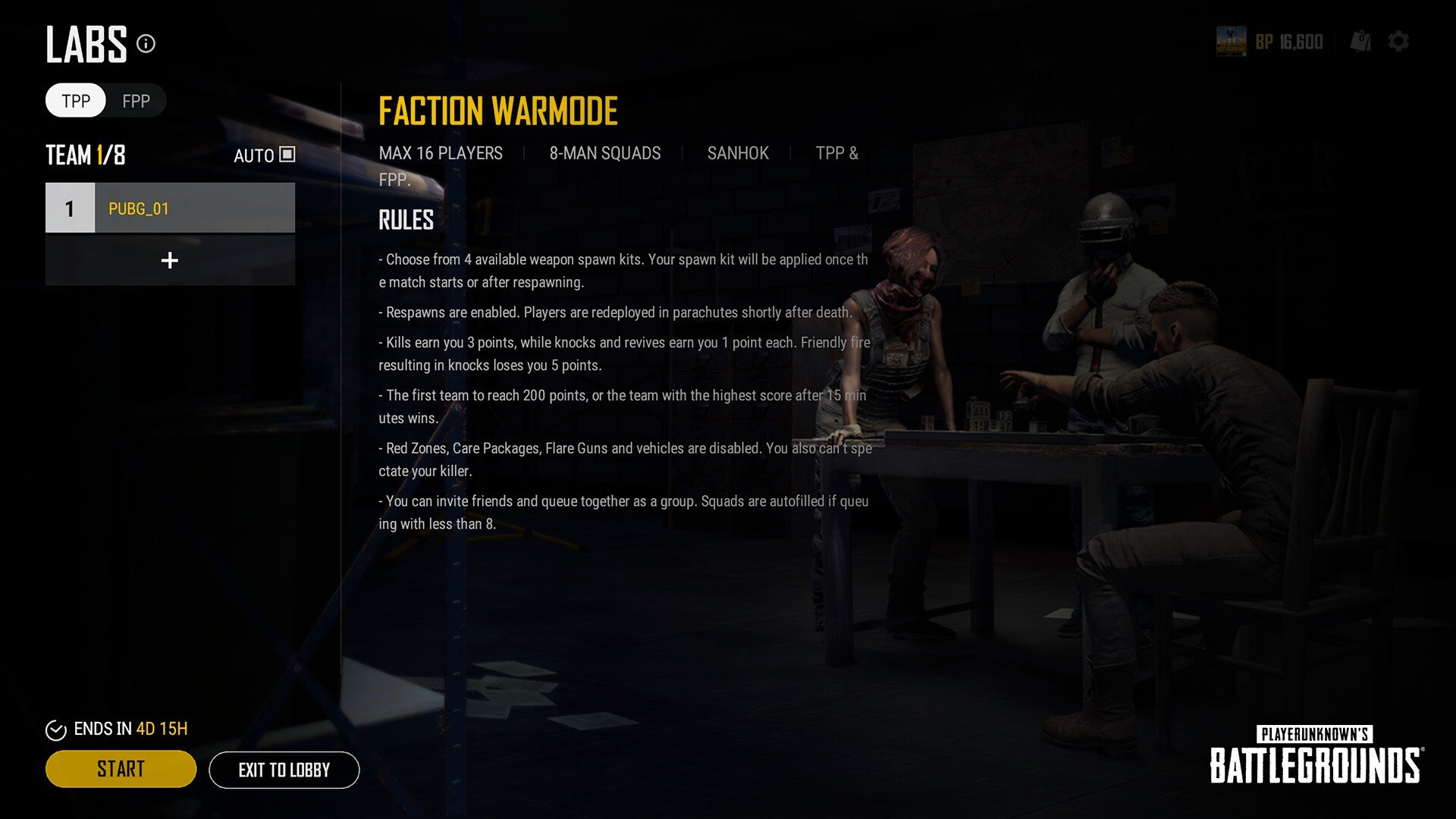 Jó ideje már, hogy nem érkezett kísérleti játékmód a PUBG-be, ennek viszont most vége, ugyanis a PUBG Labs ismét kinyitotta kapuit. A jól ismert Warmode tért vissza, egy kicsit újabb köntösben. A Faction Warmode-ban két 8-8 fős csapat csap össze egymással.