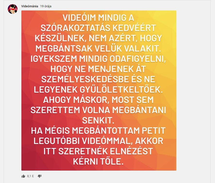 Sokak szerint viszont így is túllőtt egy célon, a legjobban talán Bennszülött Bálna és a Tanulom Magam csatorna videói foglalták össze a felmerülő problémákat. Nem is igazán azzal volt probléma, amit Dancsó mondott, hanem inkább az egész videó összhatásán szörnyülködtek a legtöbben. A youtuber igazából csak hozta a formáját, szokásához híven az egeket verdeste az iróniafaktor, a mögöttes tartalom pedig egyértelmű volt: a 14 éves Péter kigúnyolása, annak felnőttes viselkedése és nem épp hétköznapi szóhasználata miatt.