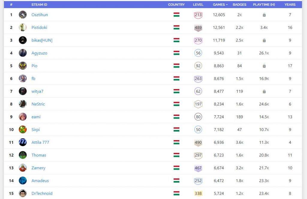 A Steamladder oldalán a nemzetiségeket külön számon tartják, így aki büszkén vállalja a Steam platformján is, hogy magyar és nem privát a fiókja, az szerepel ezen a listán.
