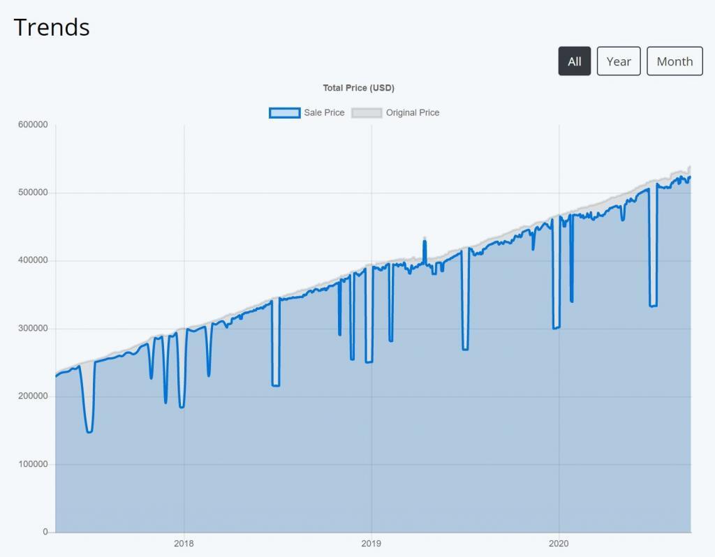 A Buy All Steam Games grafikonja szerint 2018-ban mindössze 300 000 dollárt kellett volna a pénztárnál hagyni ugyanezért a műveletért, a karácsonyi időszak alatt pedig kevesebb, mint 200 000 dollárba fájt volna az összes játék. Jól látható egyébként, hogy a Steam Sale-ek idején mekkora leárazást is kapnak a játékok.