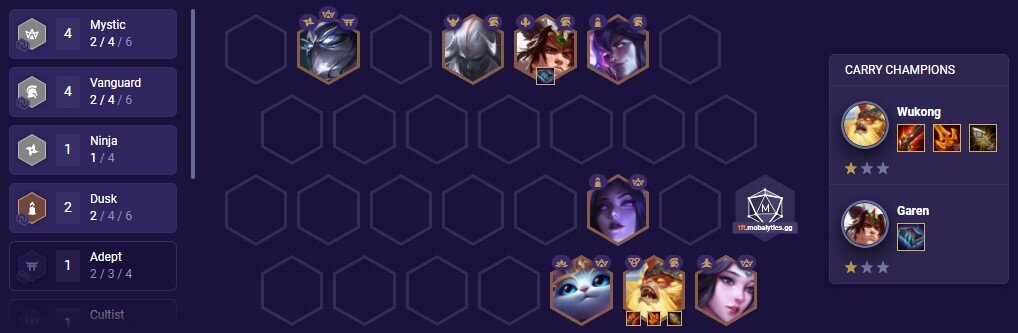 Első sorban azt kell, hogy mondjuk, a meta nagyon erősen a Cultist Trait irányába tendál jelenleg. Nem csoda, elvégre sokan szeretik, hogy ha egy seregnyi egység rohangál az oldalukon, a szóban forgó effekt pedig pontosan ebben segít. Gyakorlatilag kapunk egy ajándék egységet Galio személyében, aki a harc közben ugrik be a csatatérre, fellökve ezzel az ellenséges egységeket. Ha valamilyen csoda folytán sikerül kirámolni a 9-es Cultist kombót, gyakorlatilag legyőzhetetlenné válunk. Egy egész táblát érintő Galio feldobás, valamint egy bónusz 3 csillagos egység érkezik ilyenkor. Egyszer sikerült összehozni, rettentően szórakoztató volt.
