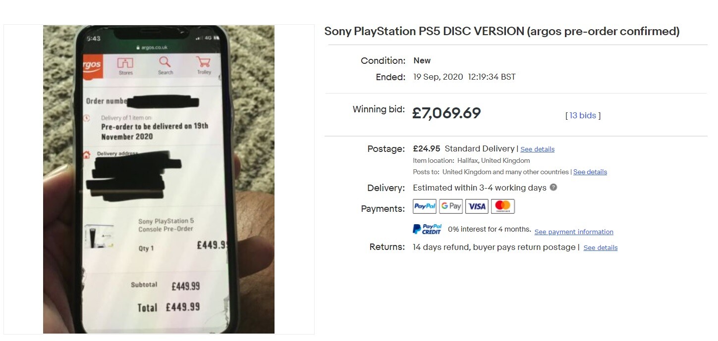 Nos, egyes eBay licitek már 700–800 font (270-310 ezer forint) között mozognak, miközben létezik már olyan is, ahol már 7000 fontnál (igen, 7 ezer font) tart. Ez több mint 2,7 millió forint. Őszintén szólva nem vagyok biztos benne, hogy ez az ember megkapja a pénzét, de abban még kevésbé hiszek, hogy a vevő megkapja az előrendelt PS5-öt. Ha viszont valaki mégis így ad el egy PS5-öt, ilyen drágán, jócskán megszedi magát egyetlen sikeres gombnyomásból. Elképesztő pofátlanság.