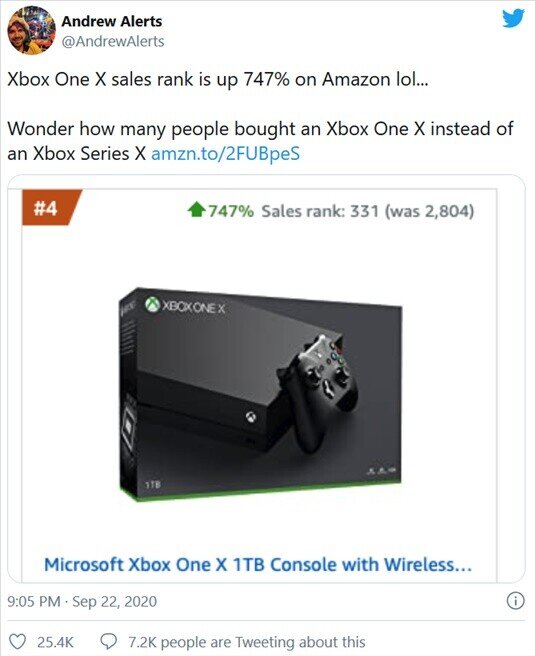 Az Dexerto és a Techpowerup nemrég arról számolt be, hogy az Xbox One X eladásai az Amazonon jelentősen megugrottak, valószínűleg amiatt, hogy sokan összekeverték a neveket. A Movers and Shakers oldal alapján, ami a legnépszerűbb termékeket listázza az Amazonon, a One X eladásai 431%-kal növekedtek.