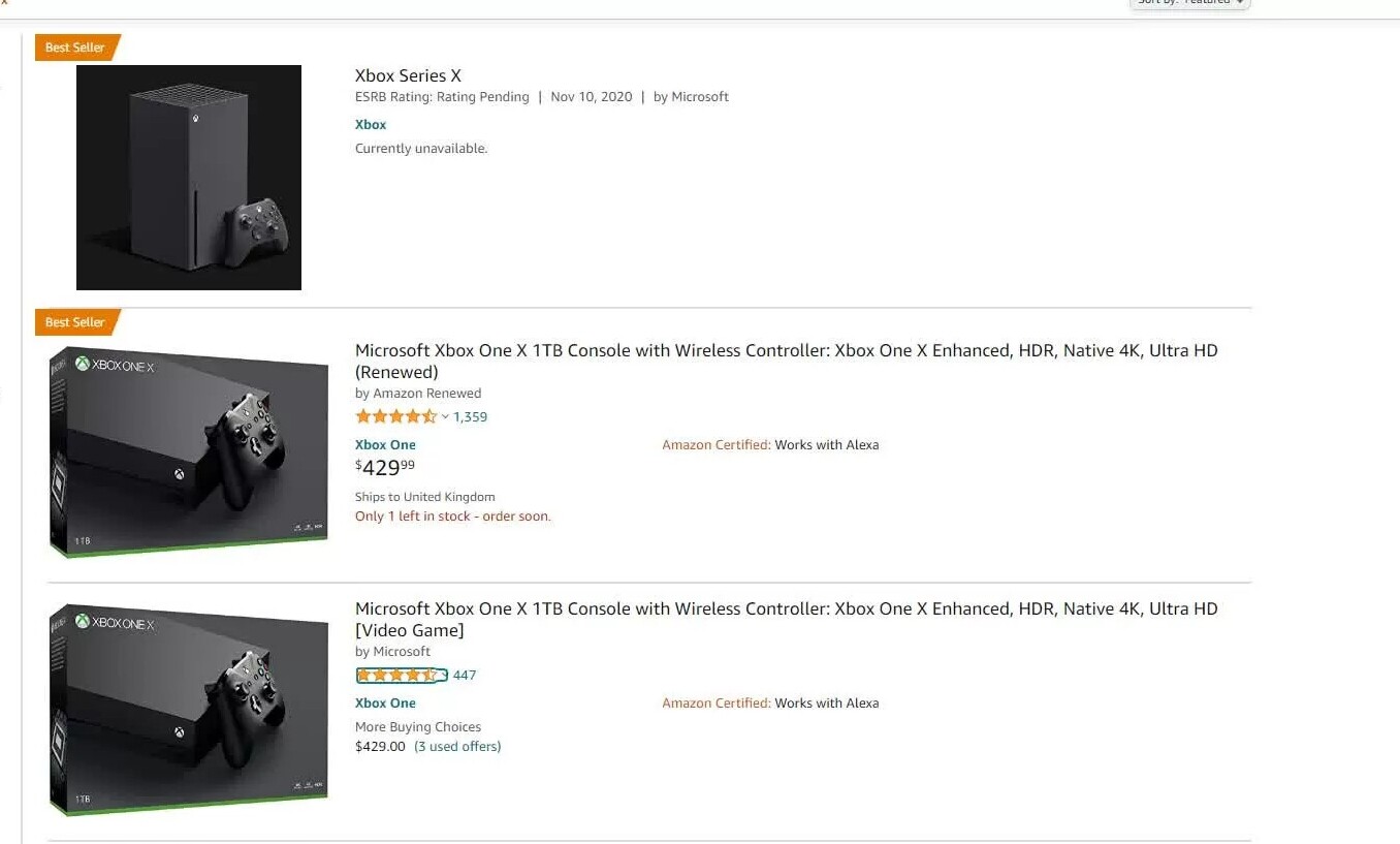 Miután szeptember 22-én végre elindult a Microsoft új generációs konzoljainak előrendelése, sokan mentek fel, többek között az Amazon oldalára vásárolni. Sokan, akik Xbox Series X konzolt szerettek volna, nem voltak tisztában a gép pontos elnevezésével, így állítólag véletlenül Xbox One X-et vettek.