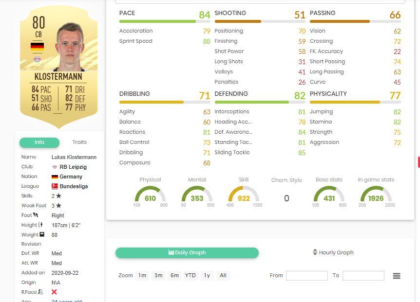 80-as értéke ellenére Klostermann elég erős lapnak számít. Értékeit végignézve mindennel rendelkezik, amire egy jó kezdő középvédőnél szükségünk van.