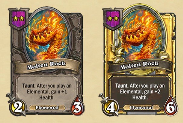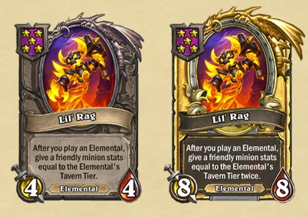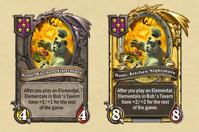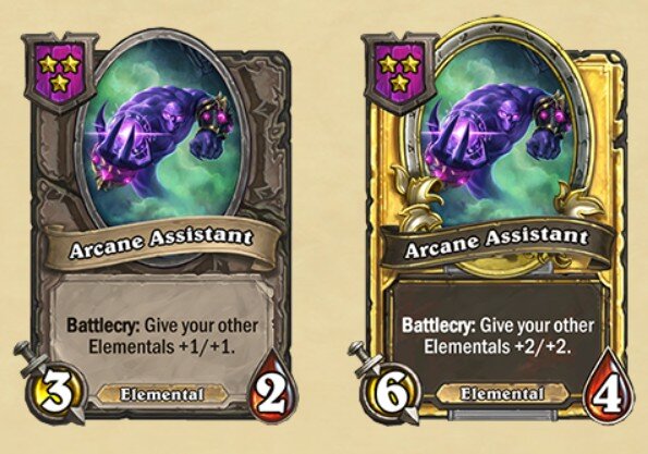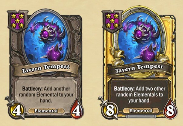 - Miután kijátszottunk egy Elemental egységet, egy barátságos minion a Tavern Tierrel megegyező statot kap. Az arany verzió ezt kétszer süti el.