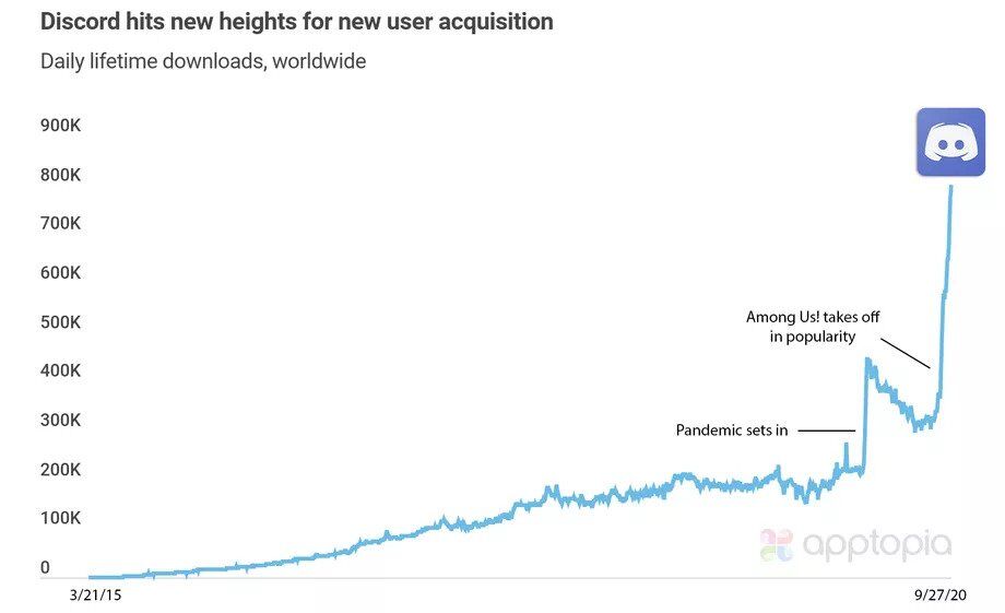 A Discord letöltésszámának folyamatos növekedése és rekordja minden bizonnyal az Among Us népszerűségének köszönhető, hiszen a játékhoz elengedhetetlen a folyamatos kommunikáció. Mivel a játékot a mobilosok és a PC-sek együtt játszhatják, szinte kötelező, hogy beszélni tudjanak egymással. A Discord erre kiválóan alkalmas.
