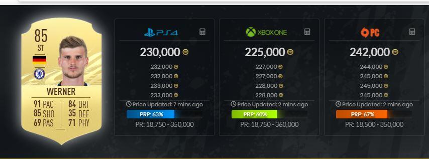 Aki esetleg nem lenne tisztában, hogy mi az a PR Update, annak röviden leírom. Minden játékosnak van egy listázási ára és az adott kártyát csak az árrésen belül adhatjuk el. Nagyon sok játékos megütötte a felső küszöb értékét, ezért a piacról elkezdtek elfogyni ezek a lapok. Timo Werner például maximális áron, 200 ezer zsetonért volt elpasszolható, de mivel a kereskedők tudták, hogy Werner piaci értéke sokkal nagyobb lesz, mint kétszázezer, ezért elkezdtek beraktározni belőle. Tegnap este viszont megérkezett a Price Range Update, és Werner már 200 ezer helyett 350 ezerért is listázható volt.