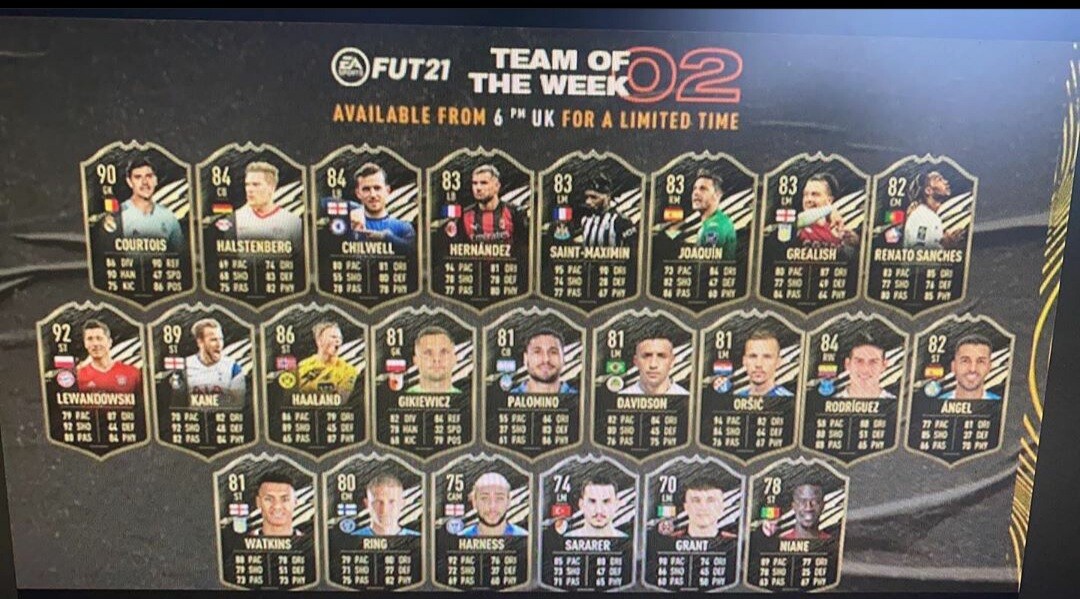A fenti képet délután fél 6-kor találtam, de már korábban is lehetett hallani arról, hogy Son nem lesz benne, Kane és Haaland viszont igen. A mi predikciónkból talán egyedül a koreai játékos hiányzik, hisz Grealish, valamint Watkins is bravúrosan játszott a Liverpool ellen. Mellettük Lewandowski is megkapja az első InForm kártyáját, valamint Renato Sanches is. Akinek már az alap kártyája is nagyon szimpatikus volt. A tavalyi év egyik legjobb beszállója Kent után Orsic volt, aki úgy néz ki ismét egy-két padra beül már az év elején. Na, de 7 órát ütött az óra lássuk, hogy a fenti kép valós-e: