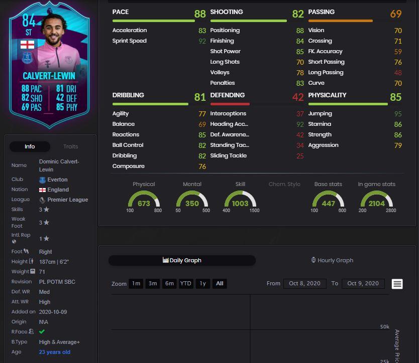 Calvert-Lewin sebessége jó, helyezkedése és befejezése szintén. Rövid passzai, viszont távoli passzai és lövései nem győztek meg. Agility és Balance kombinációja alacsony, mellette a Composure se az igazi. Fizikálisan jó lap, de nálam több a negatívum, mint a pozitívum. A dupla három csillag se emeli a lap értékét, így összeségében engem ez a csatár nem igazán győzött meg.